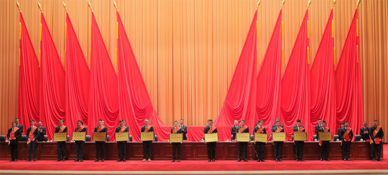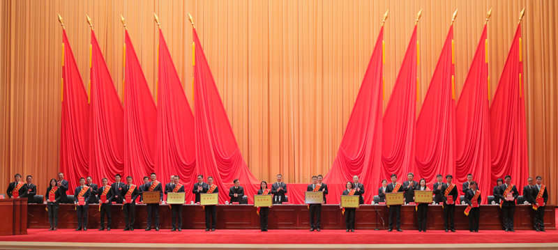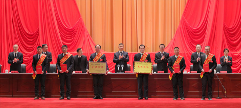 集團(tuán)公司領(lǐng)導(dǎo)向受表彰的“揭榜攻堅”先進(jìn)團(tuán)隊代表,年度工作、安全生產(chǎn)、科技創(chuàng)新、綜治信訪的先進(jìn)集體和先進(jìn)個人代表頒獎