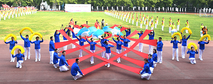 上午8時許,在雄壯的《運(yùn)動員進(jìn)行曲》伴奏下,6名護(hù)旗手組成的國旗方隊和19支代表隊方隊先后接受大會檢閱,運(yùn)動員們步伐整齊、精神抖擻、口號嘹亮、動作新穎,充分展現(xiàn)了城投職工良好的精神風(fēng)貌,給大家留下了深刻印象……隨著公司董事長金國發(fā)宣布本次賽會開幕,600名職工帶來了新編創(chuàng)作《我和我的祖國》、《咱們工人有力量》大型團(tuán)體操展示,伴隨著激昂的旋律,他們動作整齊劃一、協(xié)調(diào)舒展,充分展現(xiàn)了城投職工愛黨愛國愛企業(yè)、團(tuán)結(jié)奮發(fā)的精神面貌。
