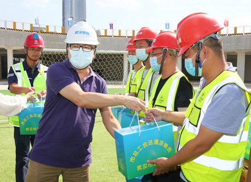 8月26日下午,武漢市總工會副主席李兵帶隊(duì),在集團(tuán)公司工會主席江強(qiáng)生的陪同下,來到集團(tuán)公司所屬鐵投公司月亮灣城市陽臺項(xiàng)目工地,慰問項(xiàng)目建設(shè)一線職工,為勞動競賽加油鼓勁。市總工會經(jīng)濟(jì)部部長吳志武等參加活動。