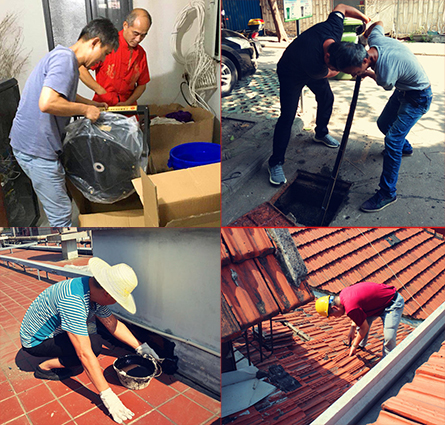 高溫酷暑不止會給人的身體帶來不適,對于老舊房屋也會造成隱患,7月17日上午,室外氣溫36度,暴曬下的屋面平頂,熱浪撲面而來。身為房屋“維保醫(yī)生”的房產(chǎn)集團一分公司維修班師傅們蹲在滾燙的屋面上進行治漏工作。房產(chǎn)集團各單位的工人們在社區(qū)疏通作業(yè)、在機房檢修設(shè)備、在社區(qū)清掃、在勝利街優(yōu)保建筑進行立面修繕、在工地周圍進行圍擋整理及道路清理......