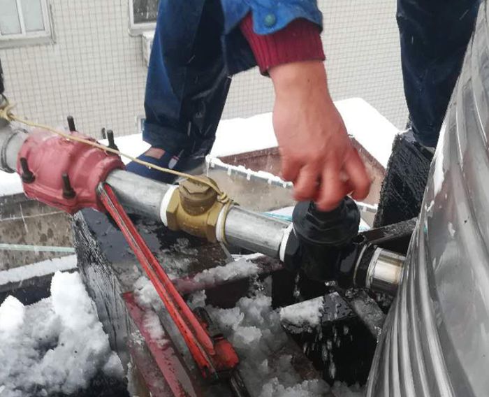 頂風(fēng)冒雪爬水箱手凍得通紅