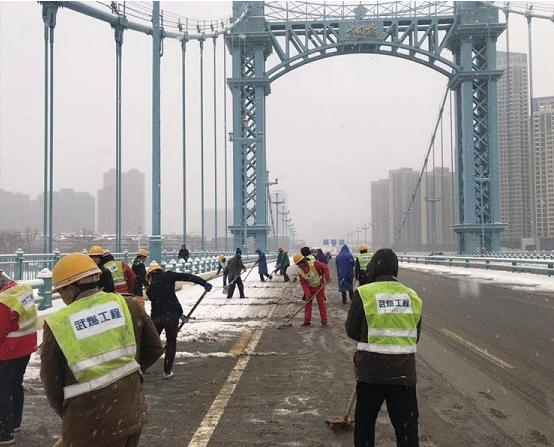 工程公司應(yīng)急搶險(xiǎn)隊(duì)也按照上級(jí)要求參與到古田橋、高新四路、九峰一路、黃家湖的掃雪除冰工作中,同時(shí)將除雪應(yīng)急機(jī)動(dòng)隊(duì)(45人)調(diào)至三環(huán)線野芷湖立交,投入其鏟雪除冰工作中。