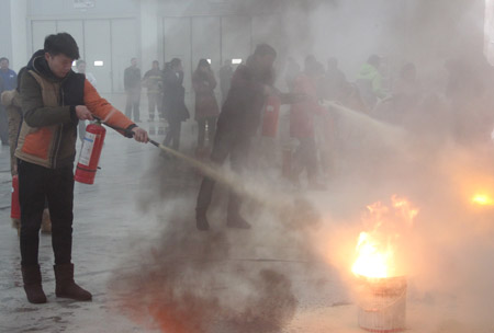 演練由3個部分組成,首先是模擬展館出現(xiàn)火情后,消防廣播響起,館內(nèi)相關(guān)人員從內(nèi)環(huán)疏散,經(jīng)營公司安全部現(xiàn)場值班人員使用消防水袋展開滅火工作;隨后展館消防站、漢陽區(qū)消防大隊的消防官兵趕到火災(zāi)現(xiàn)場,利用消防車上的消防水袋和水源進行滅火,并轉(zhuǎn)移現(xiàn)場受傷群眾;最后由展館經(jīng)營公司抽派部分員工進行了干粉滅火器的現(xiàn)場實際滅火操作。