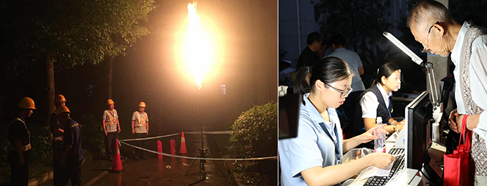 22日晚,天然氣公司工作人員冒雨在陸鷂小區(qū)涼亭里為居民辦理業(yè)務(wù);安檢員認(rèn)真檢查戶內(nèi)管線、燃?xì)馄骶?,查找安全隱患,并向居民宣傳天然氣安全用氣知識(shí),推廣公司延伸服務(wù)。