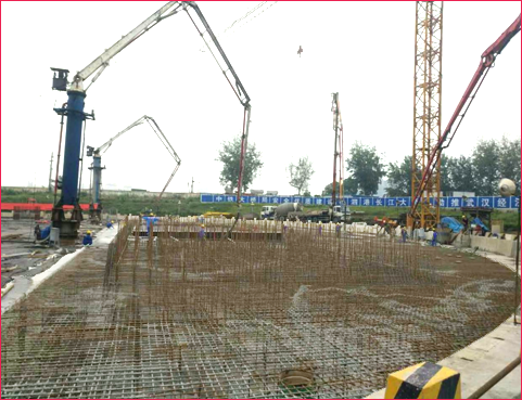 武漢楊泗港長江大橋是世界上跨度最大的雙層懸索橋,錨碇為大橋重要的受力結構,直徑為98米,基坑深39米,錨碇底板及填芯混凝土分十四層,每層分三塊澆注,單次澆筑最大方量7777立方米,共澆筑填芯混凝土24萬多方。