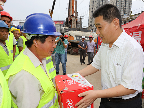 彭浩表示,今天受萬勇市長委托,看望城投公司生產(chǎn)建設一線的同志們,感謝你們在高溫酷暑里堅守在生產(chǎn)建設一線,為了市民安全用水用氣、為了城市建設所作的積極奉獻!他勉勵大家繼續(xù)發(fā)揚這種不怕高溫酷暑、克難奮戰(zhàn)的精神,再接再厲,為城市的發(fā)展再作貢獻。