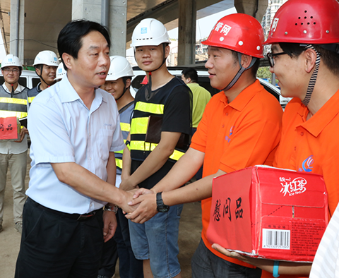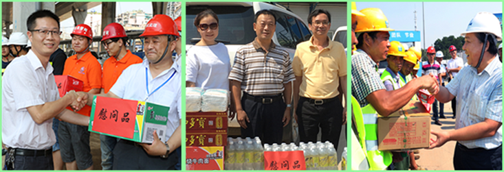 連日來,氣溫節(jié)節(jié)攀升,酷暑考驗著堅守在工作一線的廣大干部職工,更牽動著集團公司領(lǐng)導(dǎo)們的心。7月28、29日,公司董事長金國發(fā),總經(jīng)理李兵、黨委副書記吳文等領(lǐng)導(dǎo)班子成員分別帶隊赴三環(huán)線南段綜合改造工程、南湖出江通道工程和長江干堤諶家磯團鳳灣段等27個現(xiàn)場,看望慰問了一線人員,送去了飲料、綠豆、白糖等防暑降溫物資。