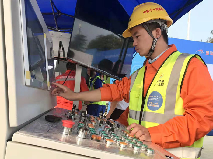 此次技能比武的盾構(gòu)機(jī)操作模擬及基坑應(yīng)急搶險(xiǎn)2個(gè)項(xiàng)目,依照工程實(shí)際設(shè)計(jì),模擬操作臺(tái)和實(shí)際操作臺(tái)完全一樣。在項(xiàng)目現(xiàn)場(chǎng),盾構(gòu)模擬操作臺(tái)上有40多個(gè)顏色不同的按鈕,按功能分區(qū),分別對(duì)應(yīng)設(shè)備啟停、推進(jìn)、刀盤(pán)控制等系統(tǒng)??脊俳o出模擬情景,比如掘進(jìn)中遇到軟土層、巖石層、淤泥或粉砂層,參賽人員再根據(jù)情景判斷應(yīng)該使用的參數(shù),然后對(duì)操作系統(tǒng)進(jìn)行相應(yīng)的調(diào)整。